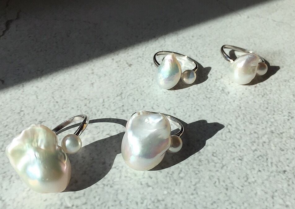 プチパールと表情のあるセミバロックパールの組み合わせで華やかな手元を演出します。