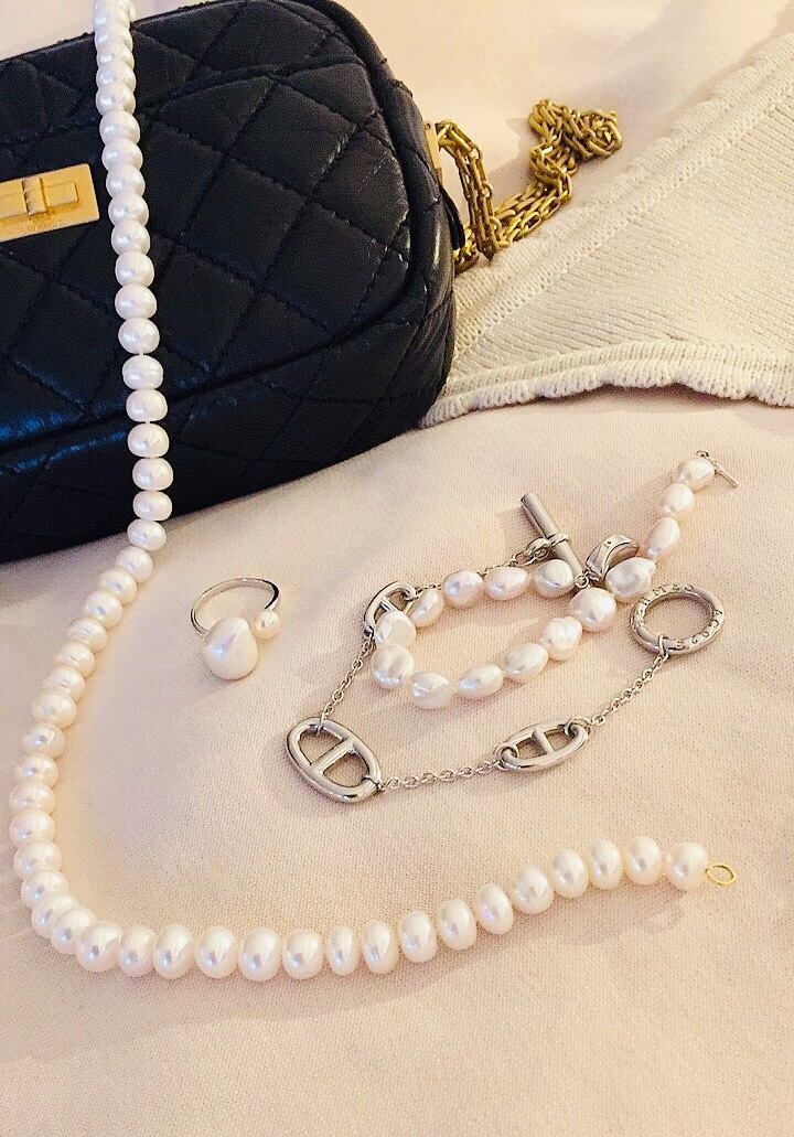 大粒とは違いサイズが気軽にカジュアルのアクセントにさらりと着けたり、時計やバングルと合わせたりと色んなコーディネートが楽しめるブレスレットです。