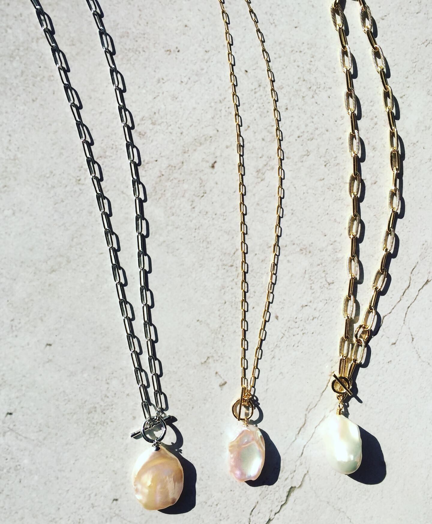 これからの季節、首元に花びらバロックパールでアクセントをつけてグッとお洒落の鮮度をあげたらいかがでしょうか!