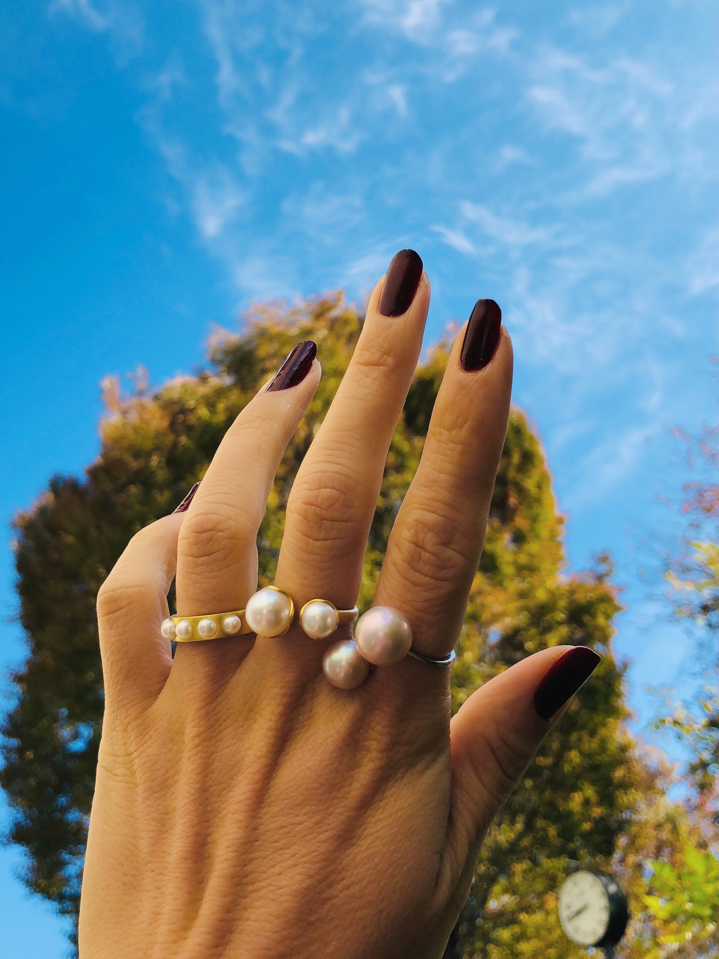 更にMatte Finishingのリングはダブルパールとの絶妙なマッチ感もあり,キズなど目立ちにくいです。他のリングとの重ね付けにも着用しやすいディリージュエリーとして活躍できるリングです。
